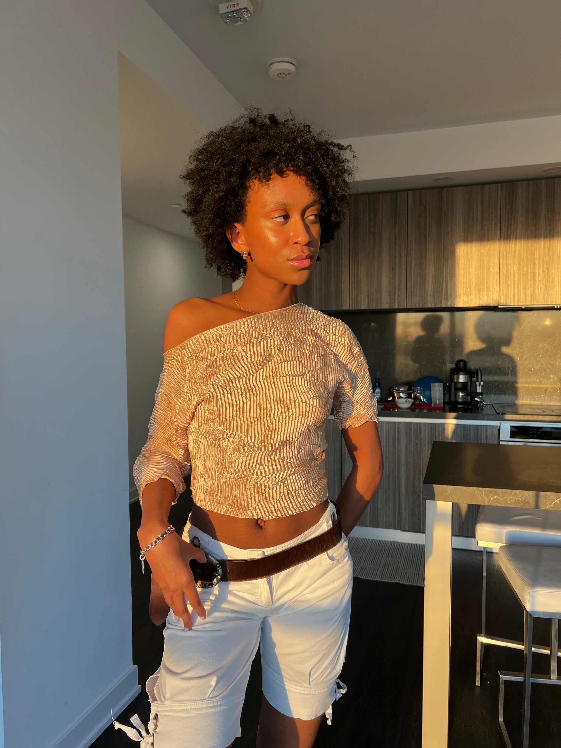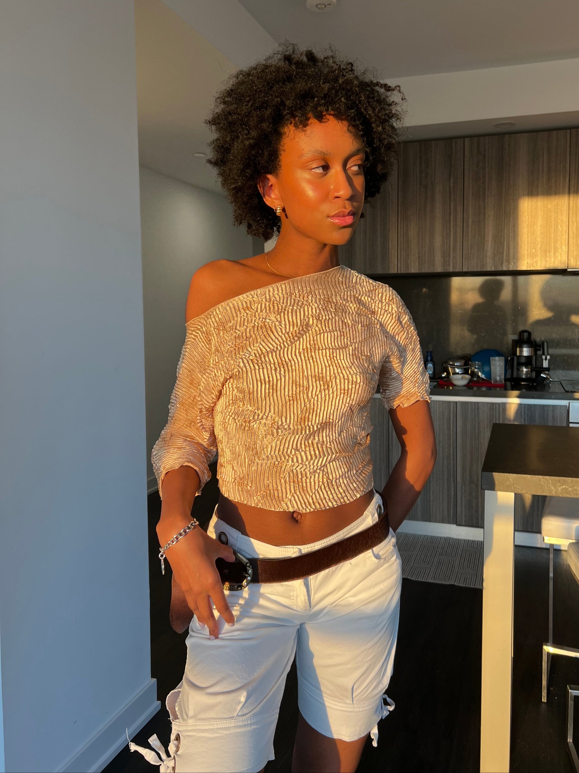 Effortless, feminine, and slightly flirty, The Paloma Blouse is an off-shoulder pleated top that brings ease and charm to any outfit. Soft beige pleats create movement and texture, making it a versatile pick to pair with trousers, skirts, or jeans. Made in Spain, this blouse exudes subtle European elegance while keeping styling simple and sophisticated. Perfect for days when you want to feel polished without overthinking.