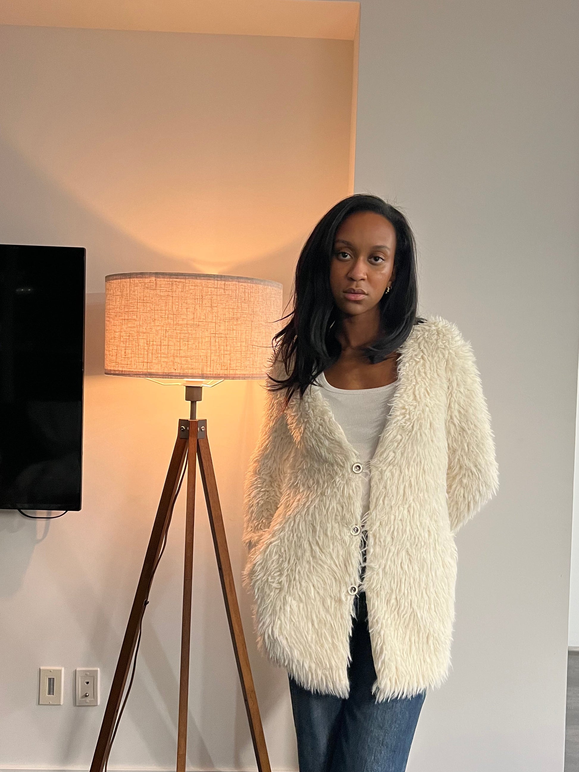 Soft, cozy, and just a little indulgent, this AMISU sweater is all about effortless style. The textured fabric feels amazing against the skin, and the three chic buttons let you cinch it up for a flattering, cozy fit. Falling at mid-thigh, it works beautifully over jeans or layered atop your favourite blouse for an easy, polished look. Plush, versatile, and a little fun — the perfect sweater to make every outfit feel intentional.
